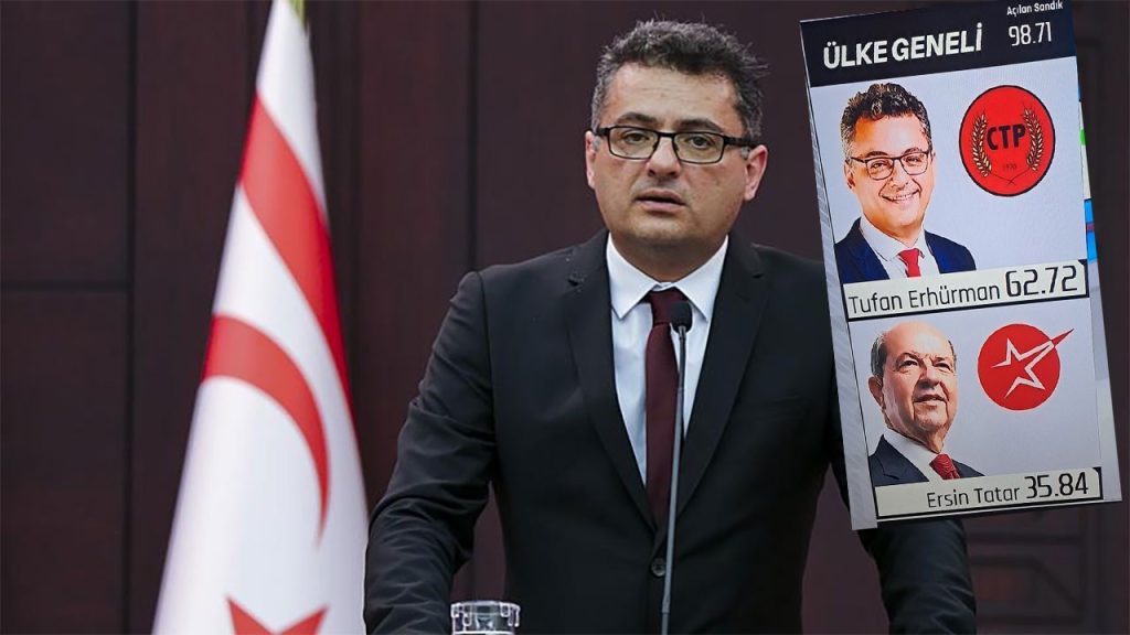 Kuzey Kıbrıs Türk Cumhuriyeti (KKTC) Yüksek Seçim Kurulu (YSK) Başkanı Bertan Özerdağ, cumhurbaşkanlığı seçiminde 777 sandıktan 580’inin açıldığını ve Cumhurbaşkanı Ersin Tatar’ın oyların yüzde 35,27’sini, CTP Genel Başkanı Tufan Erhürman oyların yüzde 63,28’ini aldığını açıkladı